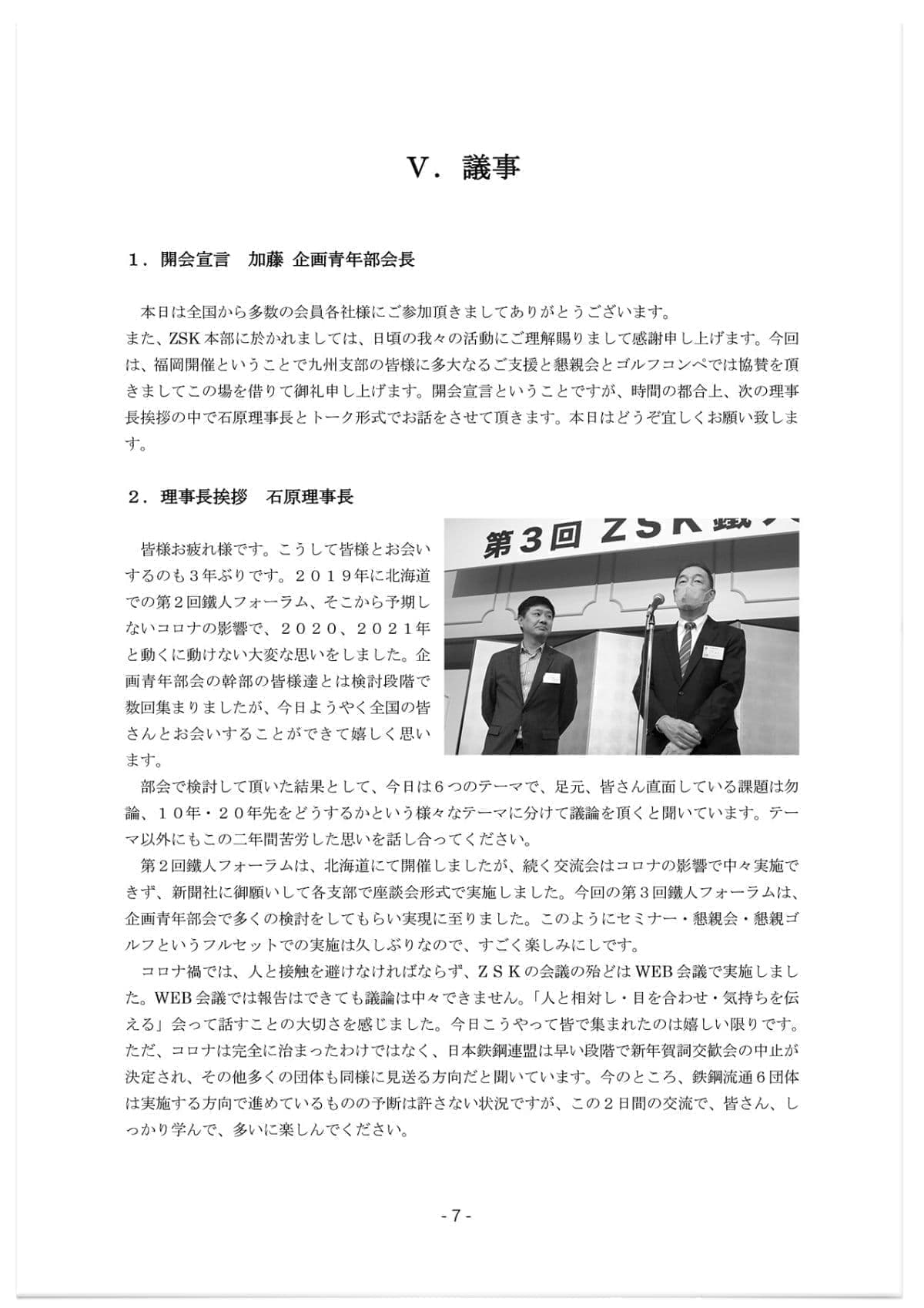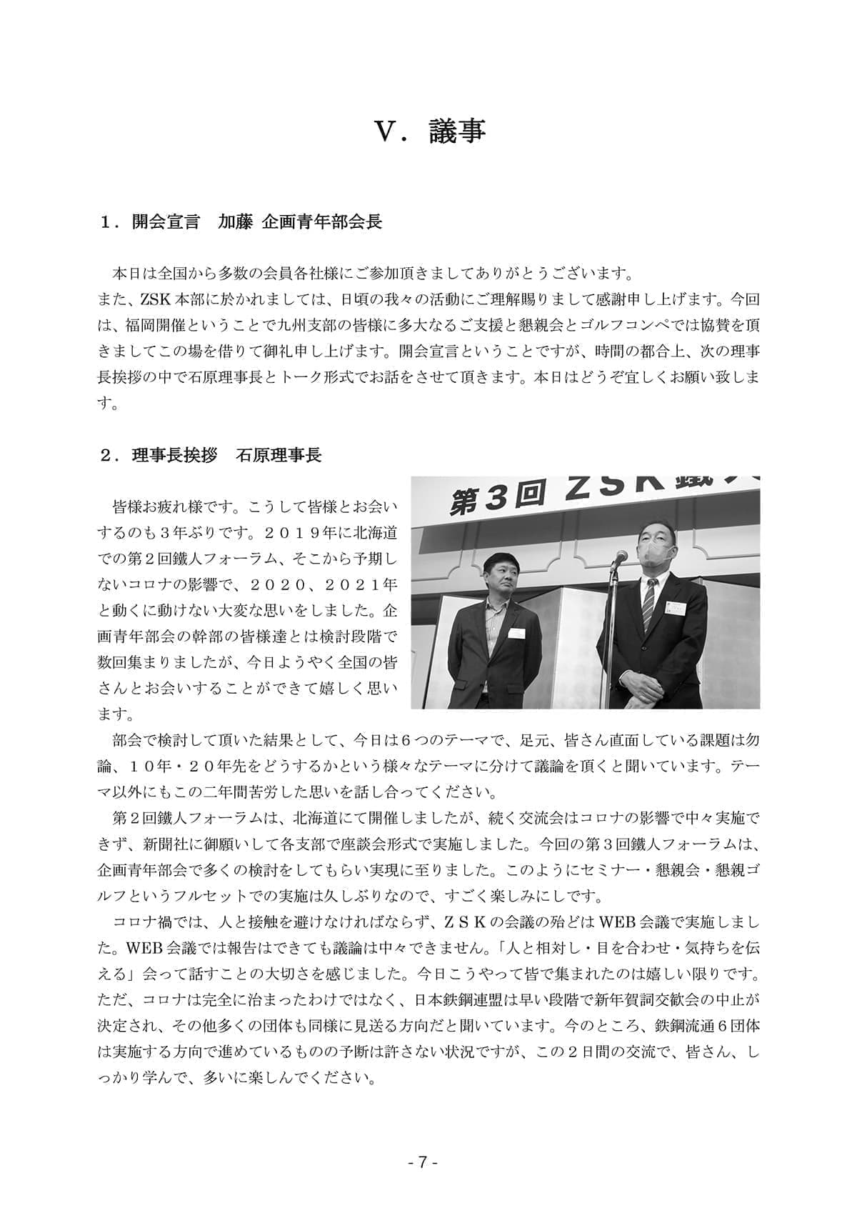 第3回鐵人フォーラムの実施報告書を委員会ページに登録しました。 2023.3.15 未来と向き合う「時代とともに環境が激変する現代、鉄屋が考えることとは」をテーマに議論した第3回鐵人フォーラムの実施報告書を参加頂いた皆様に送付致しました。合わせて、会員限定ページの委員会/事業委員会ページに登録しました。 ページトップへ 2025年労働災害統計調査へのご参加依頼(2026.2.3) 職場改善発表大会(2026.1.26) 前理事長 石原慶明氏が藍綬褒章を受章(2025.11.5) 第26次実態調査報告(2025.11.5) 下請法は取適法へ 改正ポイント説明会のご案内(2025.10.30) 改正下請法説明会のご案内 (2025.10.1) 【 過去のTOPICS 】