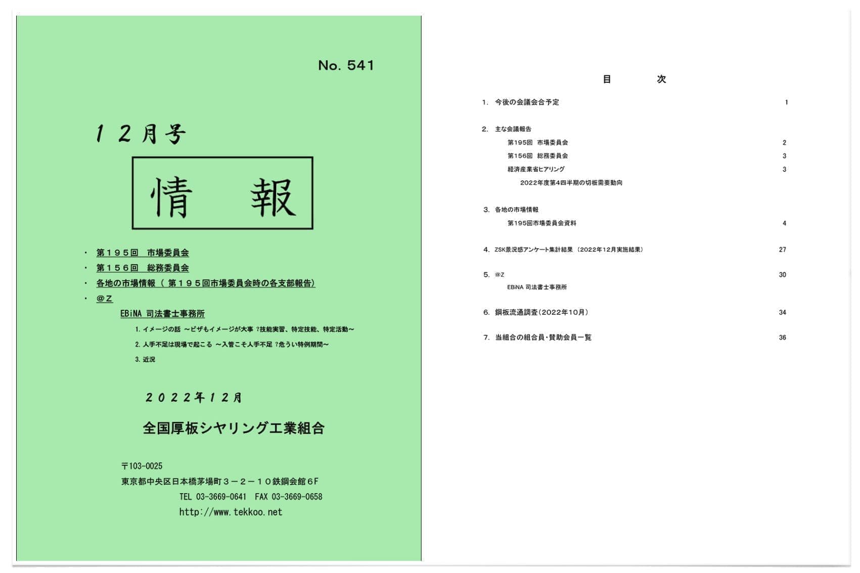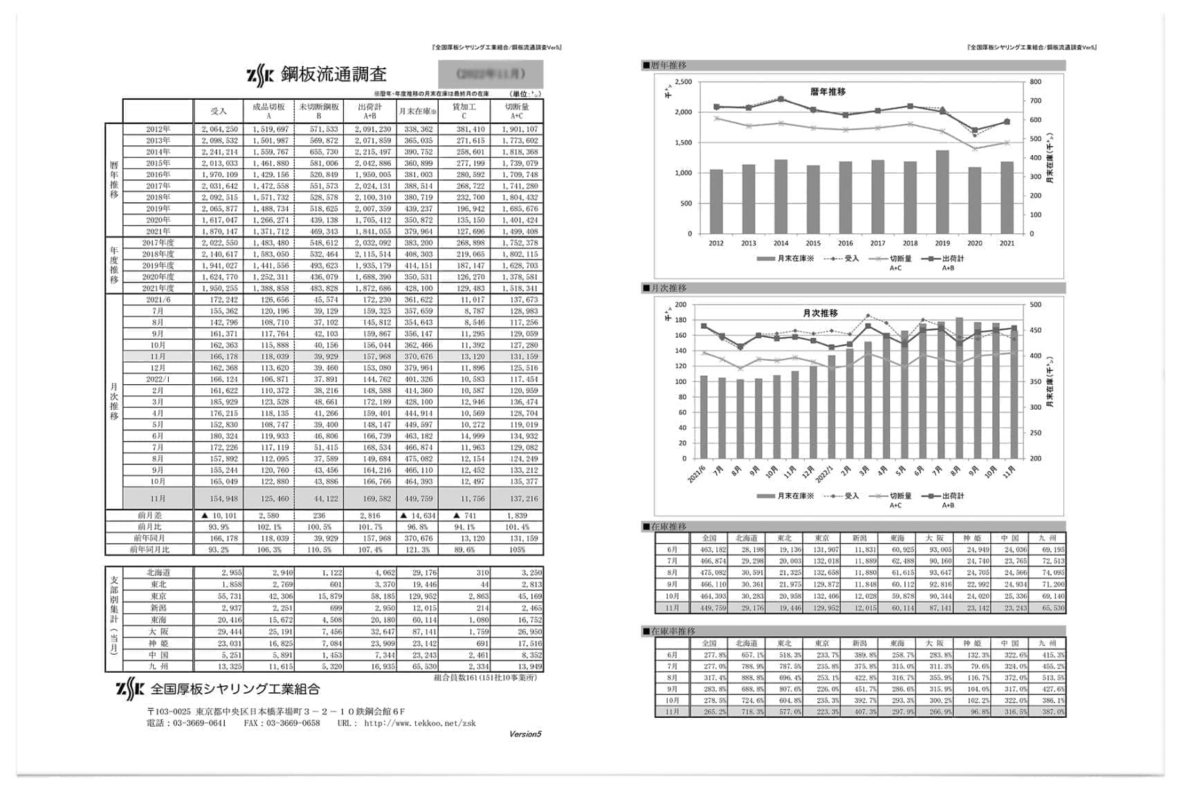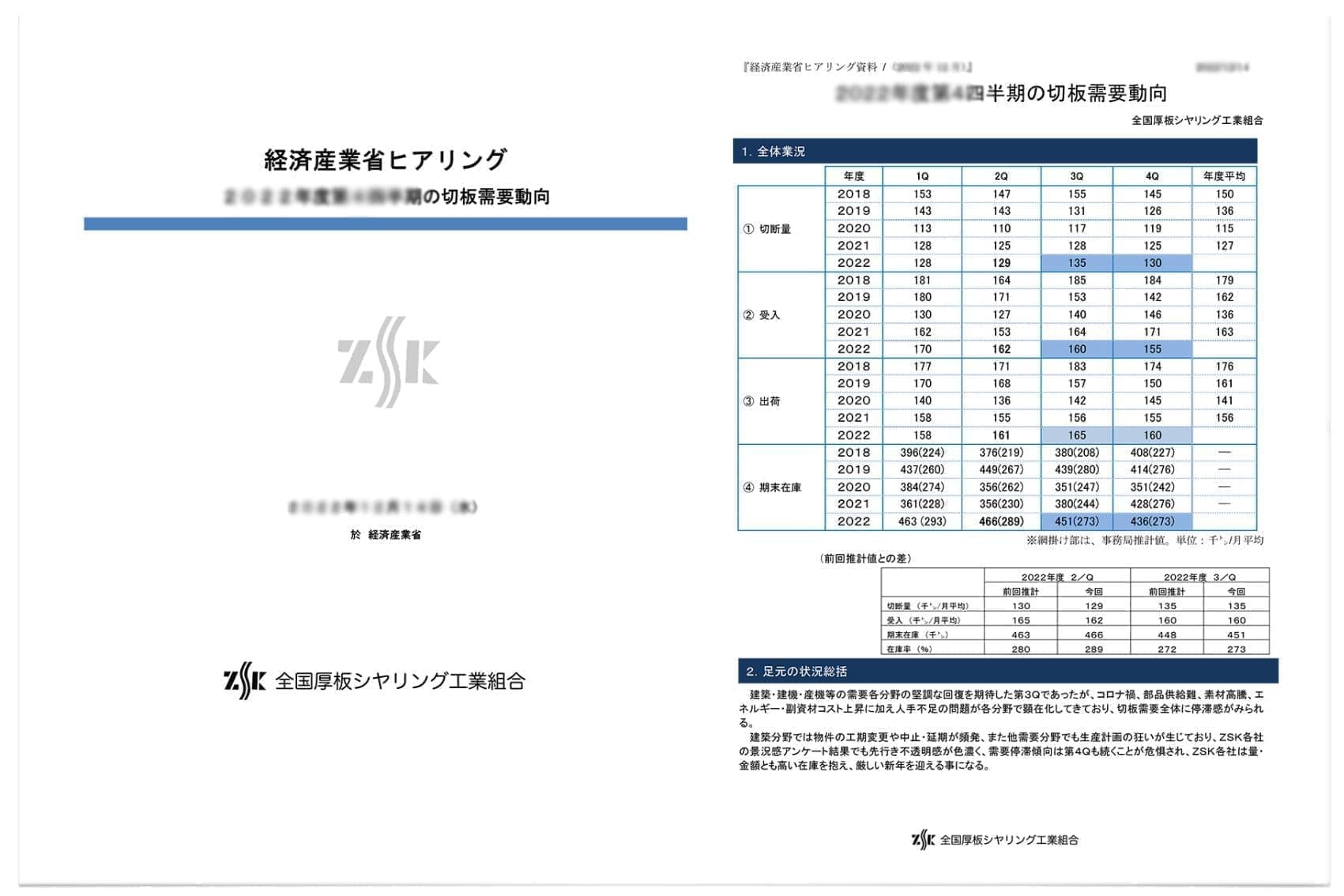 HOME | 資料 経済産業省ヒアリング資料 鋼板流通調査 機関誌「情報」 会員限定BOX ■ 経済産業省ヒアリング資料 四半期(6月9月12月3月)毎に実施している経済産業省ヒアリング時の資料最新版のみダウンロード可。バックナンバーは会員限定BOX からダウンロードしてください。【内容】 全体概況 / 足下の状況総括 / 全国概況 / 地区別概況 / 課題と取り組み状況 /輸入鋼材動向 ZSK景況感アンケート集計結果 / 鋼板流通調査結果 最新版はこちら→ ページトップへ ■ 鋼板流通調査 毎月末に発行している統計資料最新版のみダウンロード可。バックナンバーは会員限定BOX からダウンロードしてください。【内容】 集計項目:受入 / 成品切板 / 未切断鋼板 / 出荷計 / 月末在庫 / 賃加工 / 切断量 集計項目に対する暦年推移・年度推移・月次推移を全国合計および支部別の集計結果 最新版はこちら→ ページトップへ ■ 機関誌「情報」 毎月末に発行している機関誌最新版のみダウンロード可。バックナンバーは会員限定BOX からダウンロードしてください。【内容】 掲載内容:今後の会議会合 / 主な会議報告 / @Z / 鋼板流通調査 / 会員一覧 / その他情報 最新版はこちら→ ページトップへ