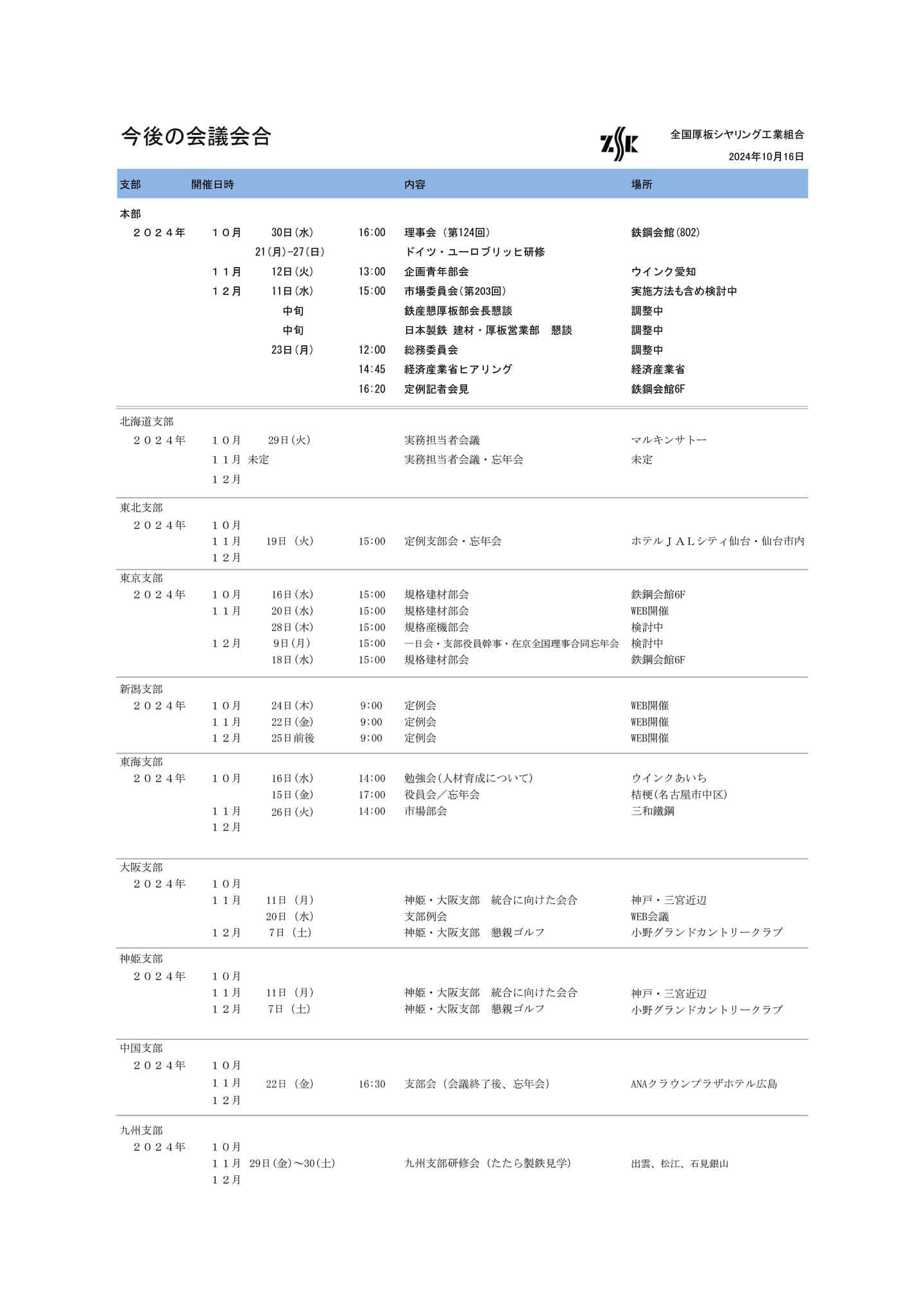 会議会合予定と鋼板流通調査